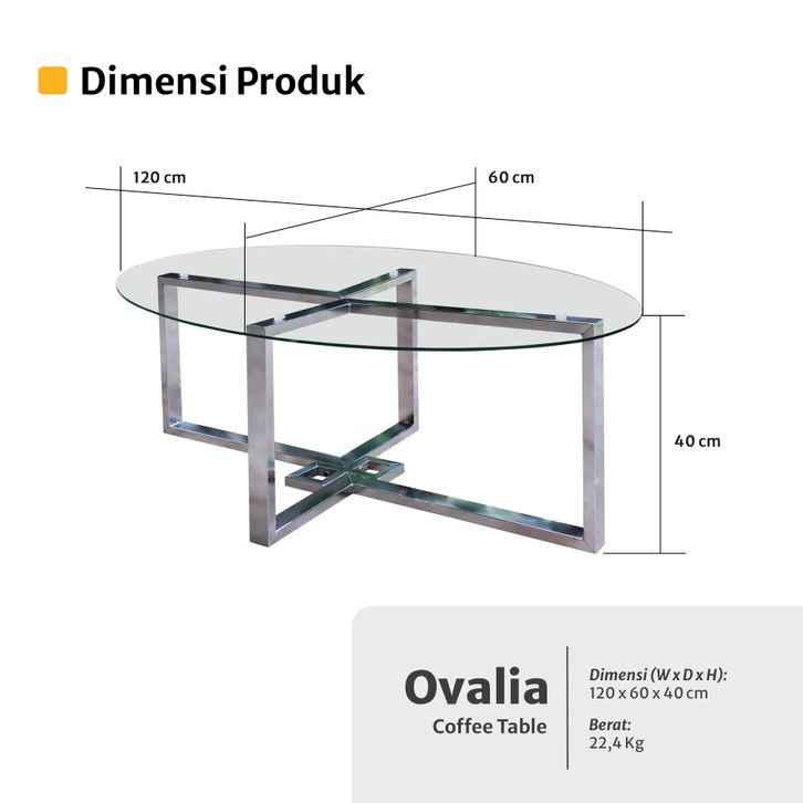 Meja Tamu Coffee Table Meja Kopi Meja Kaca Meja Oval - Seahorse OVALIA 120x60 T45 Stainless Minimalis Knockdown