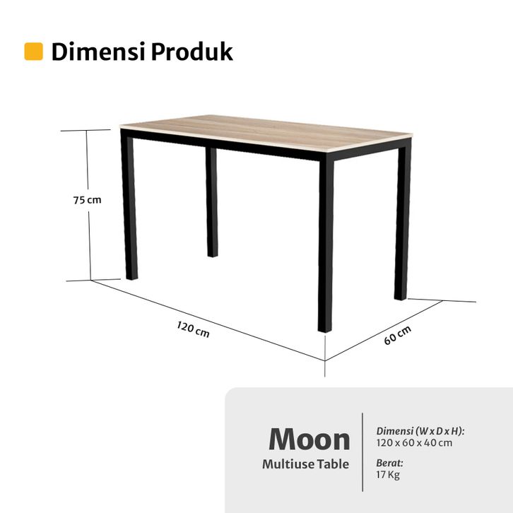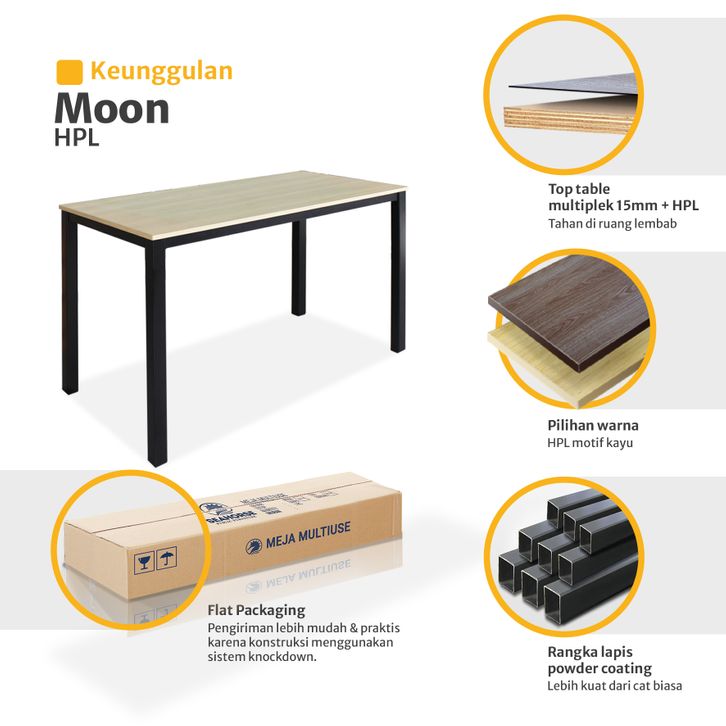Meja Makan Meja Kerja Meja Kantin Meja Baso Meja Resto Meja Kayu Office - Seahorse MOON 120x60 T75 HPL Multiplek