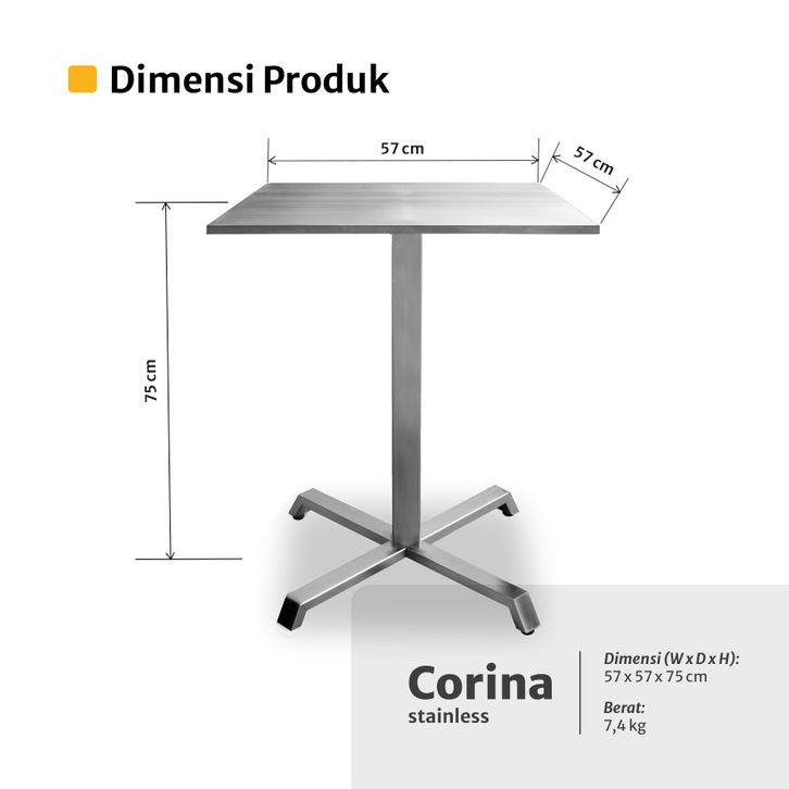 Meja Café Meja Kafe Meja Bar Meja Resto Meja Kantin Meja Outdoor - Seahorse CORINA 57x57 T75 Stainless Minimalis