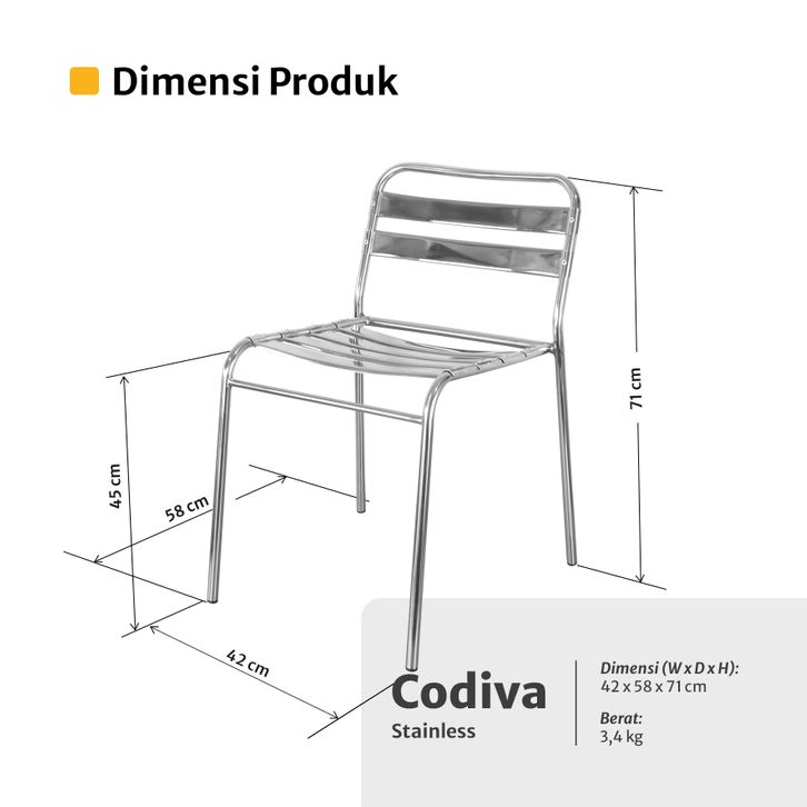 Kursi Café Kursi Kafe Kursi Resto Kursi Taman Kursi Outdoor - Seahorse CODIVA T45 Stainless Minimalis
