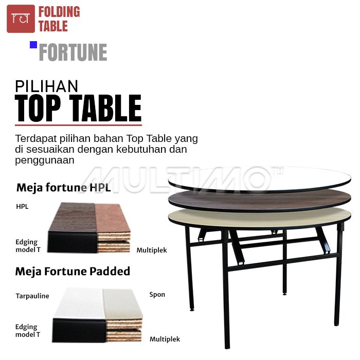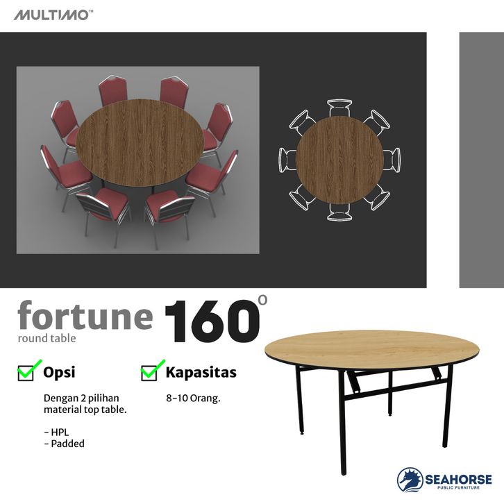 Meja Lipat Bundar Meja Resto Meja Pesta Meja Banquet - Seahorse FORTUNE Ø160 Multiplek HPL