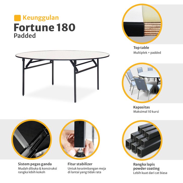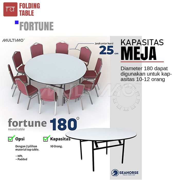Meja Lipat Bundar Meja Resto Meja Pesta Meja Banquet - Seahorse FORTUNE Ø180 Multiplek Padded