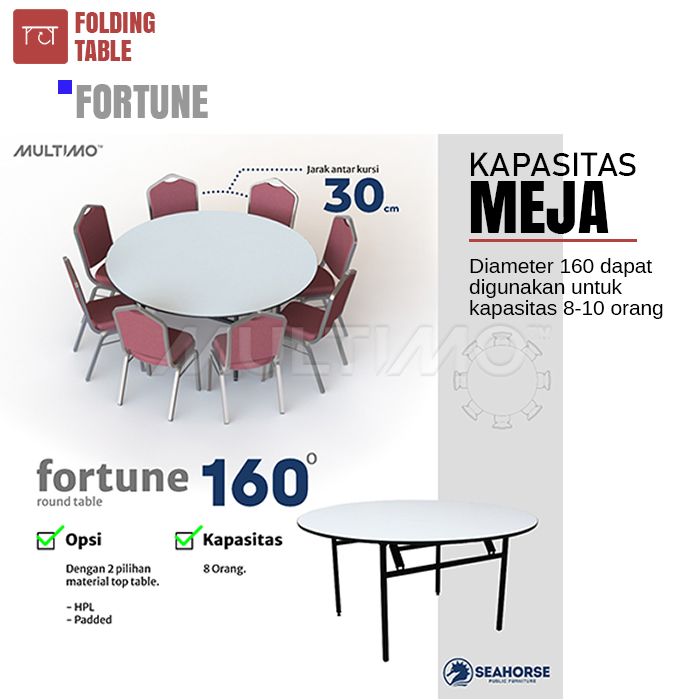 Meja Lipat Bundar Meja Resto Meja Pesta Meja Banquet - Seahorse FORTUNE Ø160 Multiplek Paded