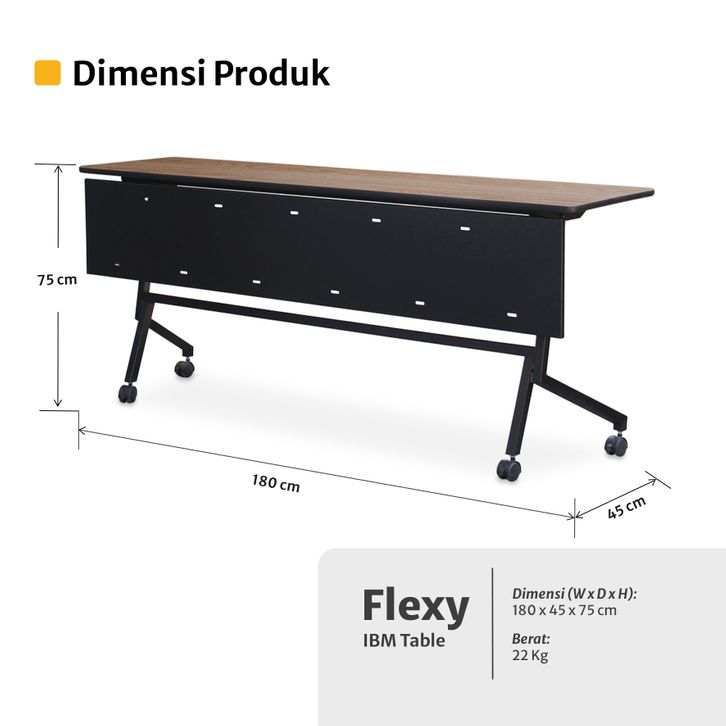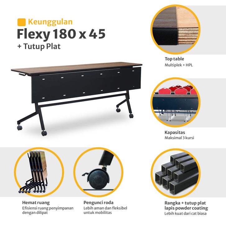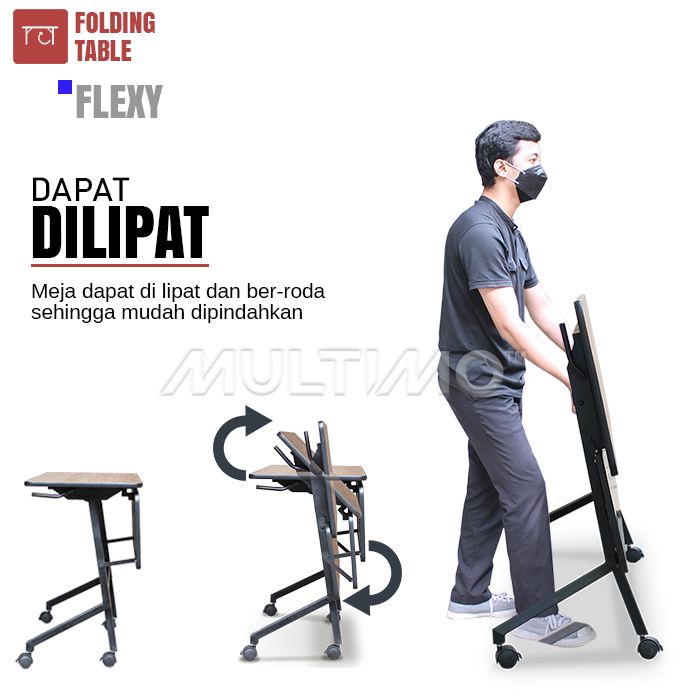 Meja Training Meja Banquet Meja Lipat Meja IBM Roda - Seahorse FLEXY 180x45 Plat Multiplek HPL
