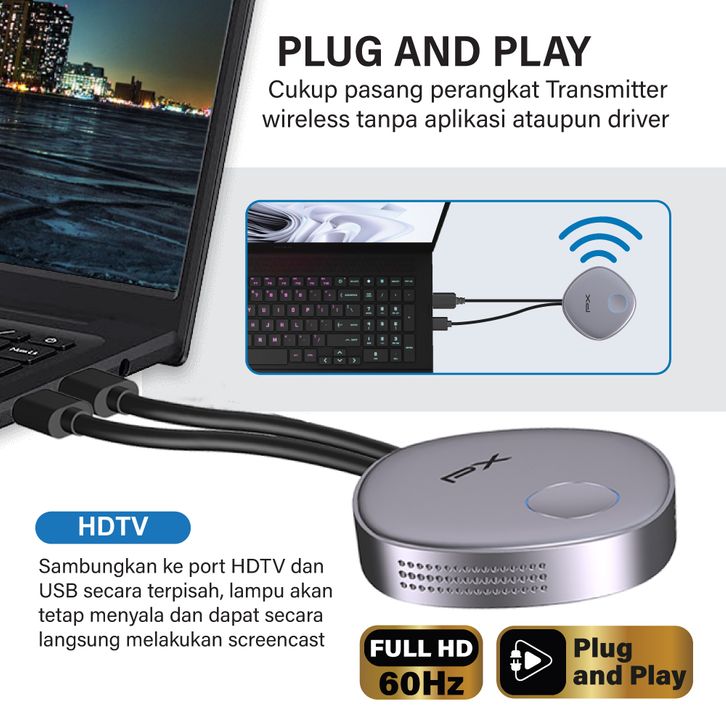 Wireless HDMI Transmitter Receiver HDMI USB Laptop Smartphone Tablet 100 meter PX WMS-HD60
