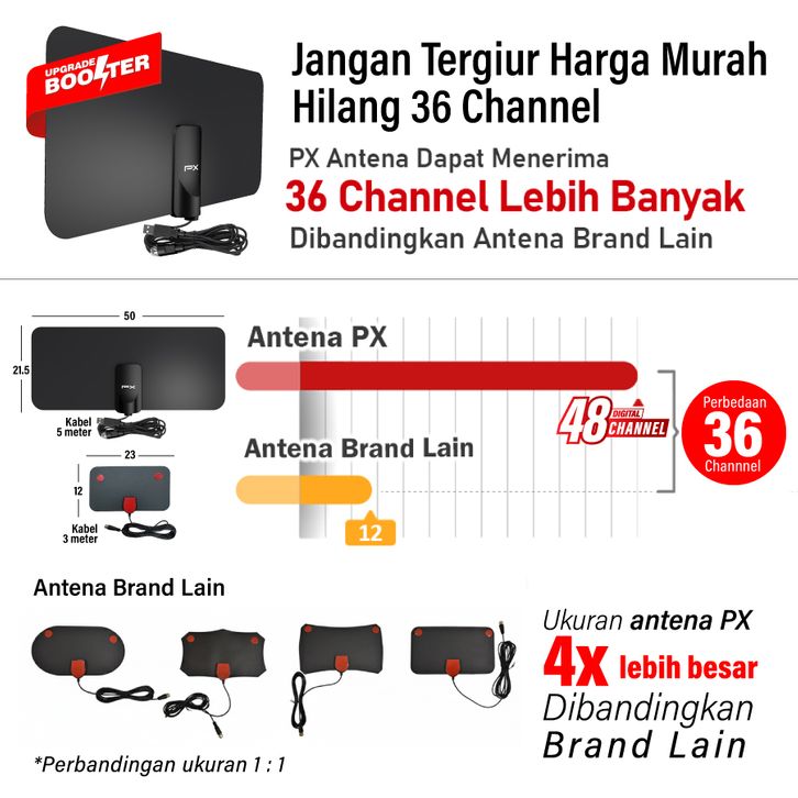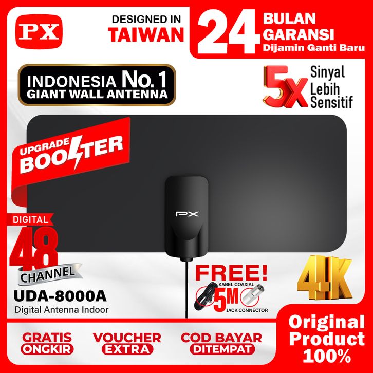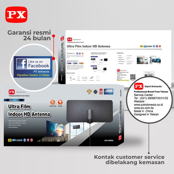 Antena TV Digital Indoor Booster DVBT2 4K Ultra Thin Antena Dinding PX UDA-8000A