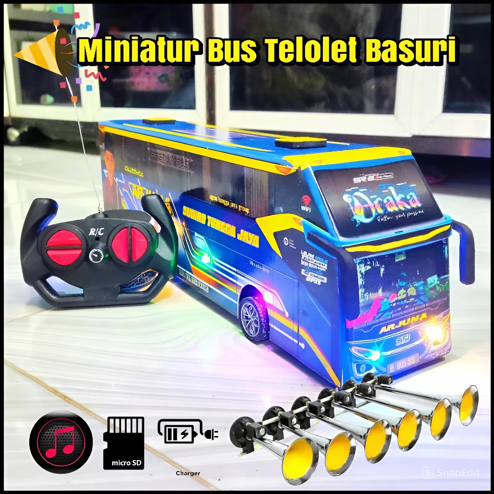 BUS TELOLET BASURI MINIATUR JET BUS AKAP FULL LAMPU REMOT CONTROL MAINAN FULL SPEK KAYU RC REMOTE BUS VIRAL FULL VARIASI