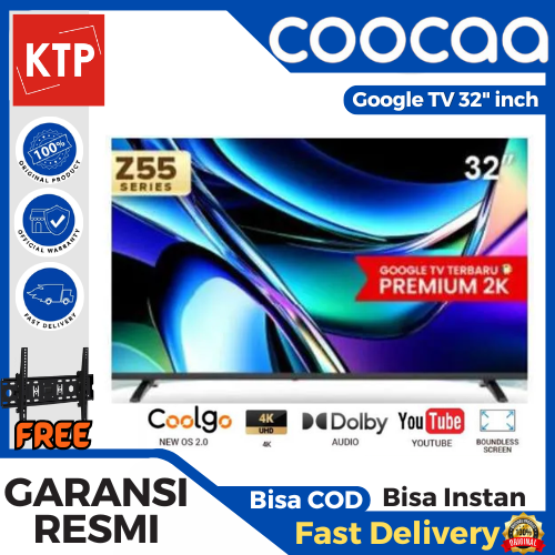 NEW COOCAA 32 inch Z55 32Z55 TV 2K Google TV 2K HDR 10 Eye Care 5.0 Dolby Audio GARANSI RESMI COOCA - KITA TANPA DP
