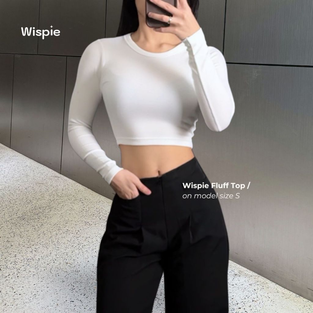 Wispie Atasan Knit Wanita Korean Top Lengan Panjang Pendek Crop Long Short Sleeve Terlaris