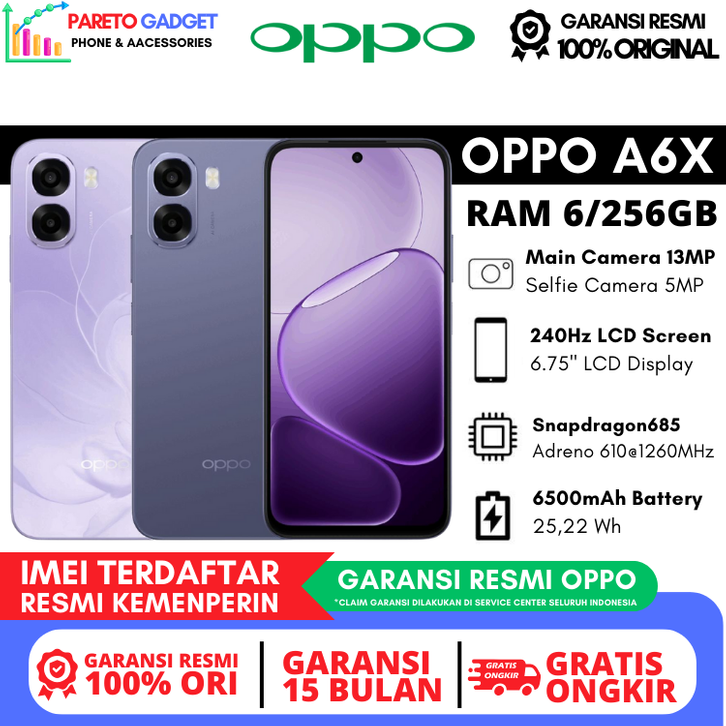 [NEW] OPPO A6x 8/256GB - [IP64 Water & Dust Resistance, 6500mAh Large Battery, Snapdragon 685, 120Hz Fast Responsive