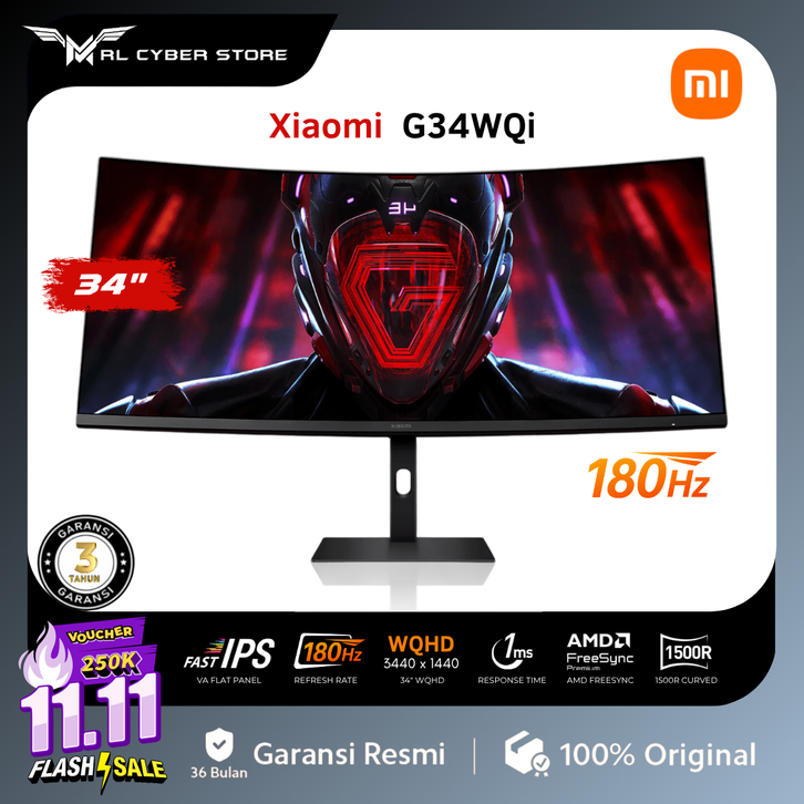 Xiaomi G34WQi CURVED 34 INCH WQHD 180HZ MONITOR GAMING MONITOR 34 INCH KOMPUTER/COMPUTER PC GARANSI RESMI