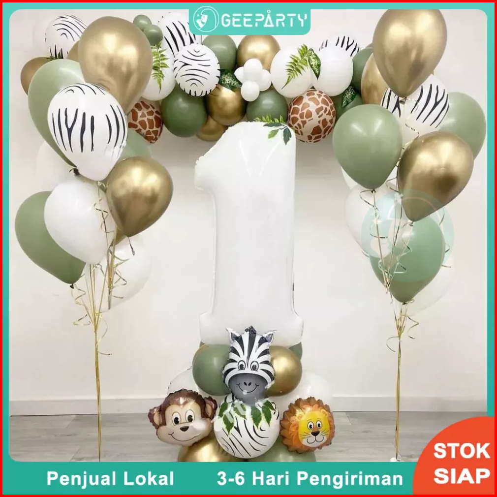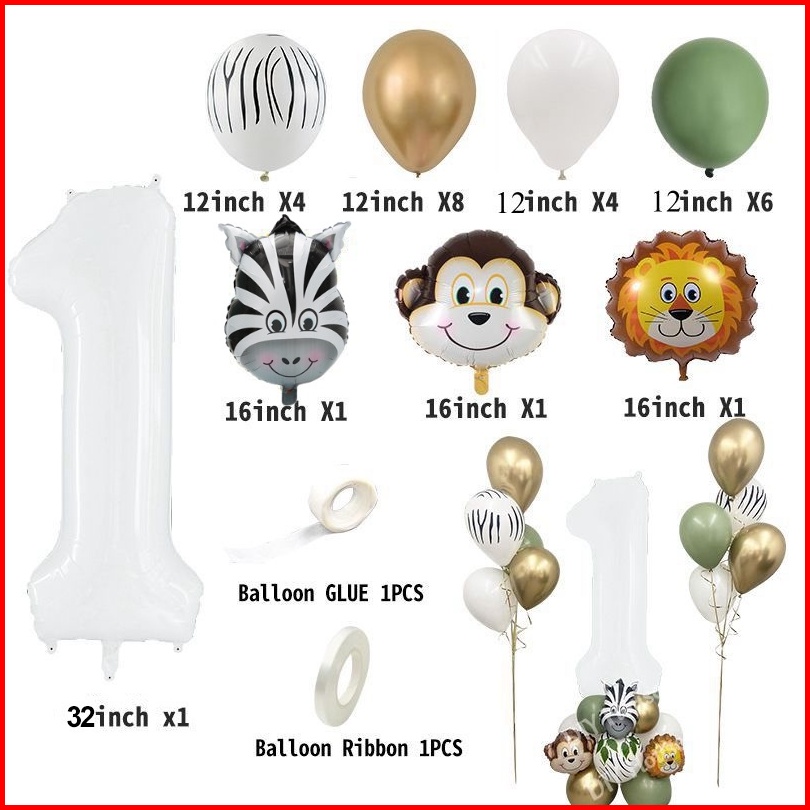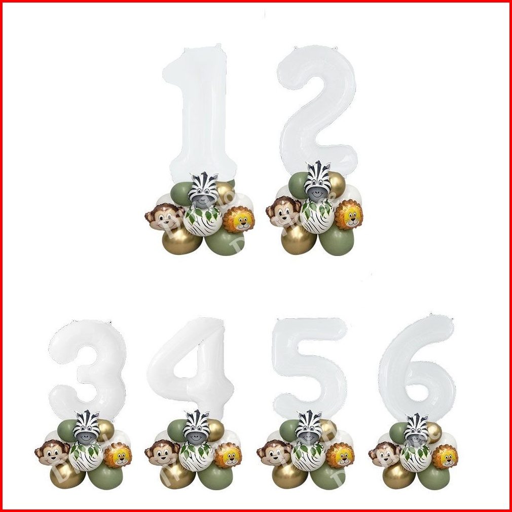 28 Pcs Hewan Hutan Vintage Digital Balon Hijau Set Untuk Dekorasi Pesta Ulang Tahun Anak-anak