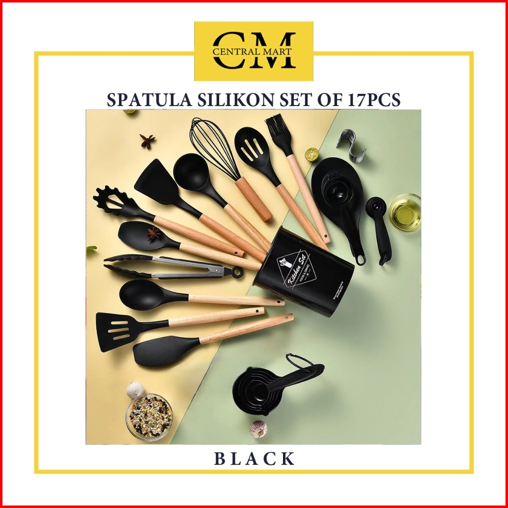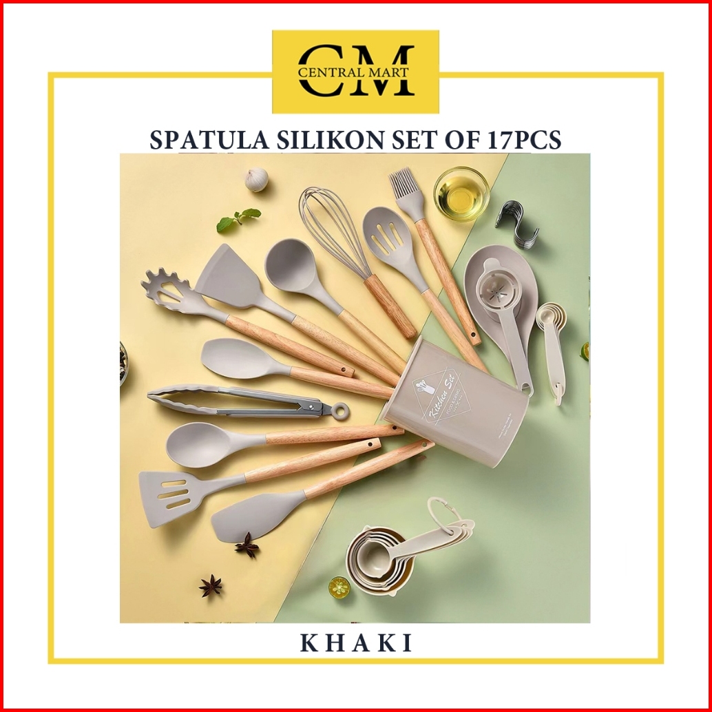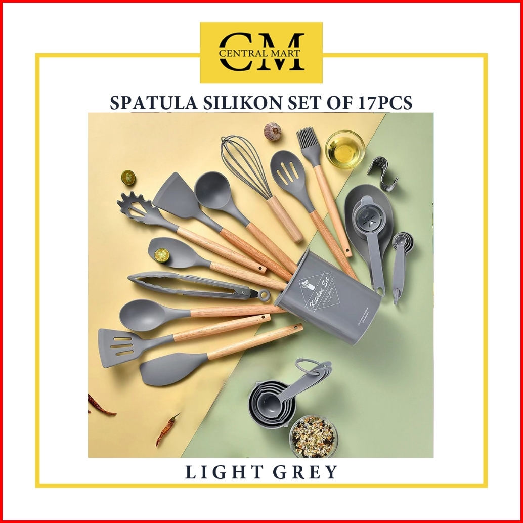 Spatula Silikon Set 17pcs Kitchen Set Spatula Wadah Bulat Kotak Sodet Alat Masak Sutil Dapur