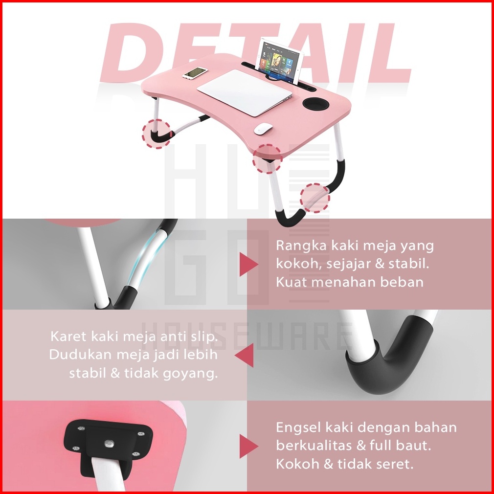 Hugo Meja Lipat Portable Meja Laptop Meja Belajar Anak