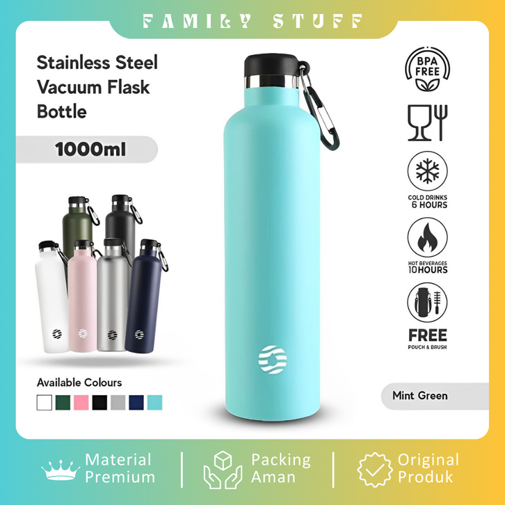TUMBLR BOTOL MINUM AIR PANAS & DINGIN TUMBLER OLAHRAGA STAINLESS STEEL 1LITER DOUBLE INSULATED BOTTLE DENGAN GANTUNGAN