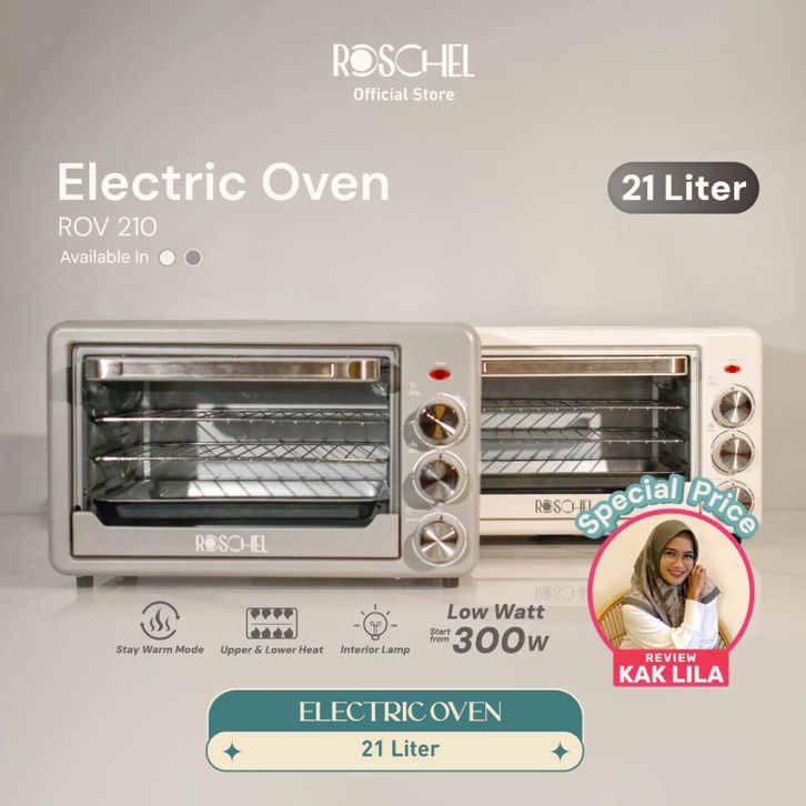 [Star] ROSCHEL Electric Oven Listrik 21L Aesthetic Kapasitas Besar Rendah Watt Tipe ROV210 Estetik 300 Watt Renda