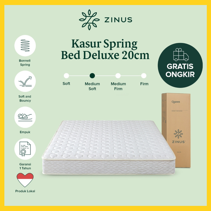 Kasur Spring Bed Zinus Deluxe 20cm Gratis Ongkir Tempat Tidur In a Box
