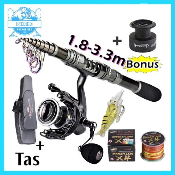 Joran Pancing Full Set 1.8-3.3M Carbon Joran 1000-5000 Reel 5.5:1 Joran Set Lengkap