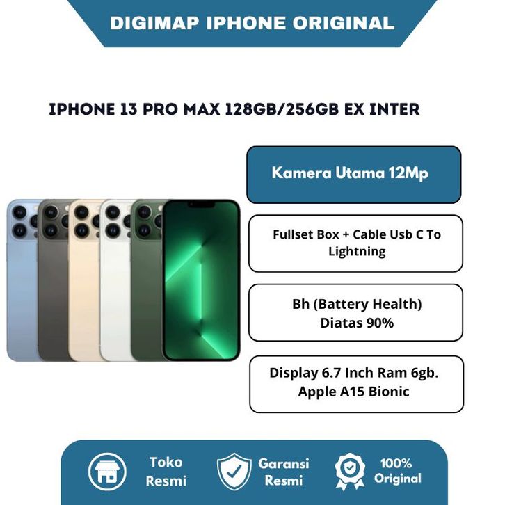 Iphone 13 Pro Max 128gb/256gb Second Inter Fullset Box + Cable Usb C To Lightning Original Official Store