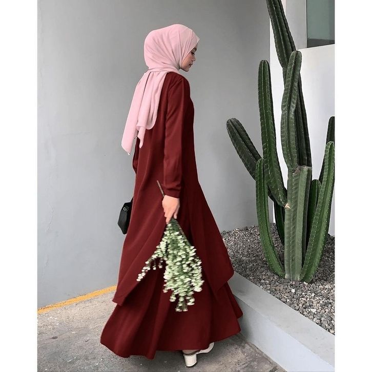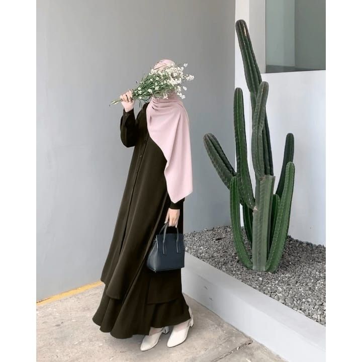 Baju Setelan One Set Rok Tunik Wanita Muslim Kekinian Jumbo Bahan Itty Creepe Terbaru M L XL XXL