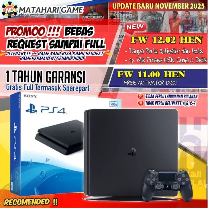 Ps4 Slim Hen Permanent H3N | PlayStation FW11.00 | FW12.02 | Offline Sony SLIM 1TB - GARANSI 1TAHUN
