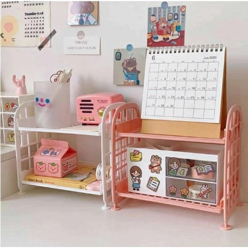 RAK MEJA PLASTIK MINI 2 TINGKAT MULTIFUNGSI RAK 2 SUSUN RAK MEJA MINI RAK MEJA RIAS KANTOR DAPUR SERBAGUNA