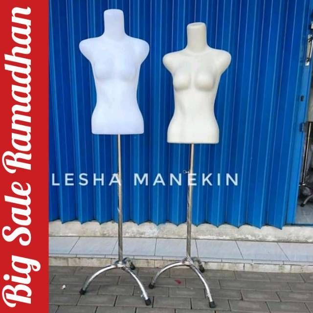 Manekin Badan Set Tiang Penyangga- Patung Baju Cewek Body Lurus Set Tiang