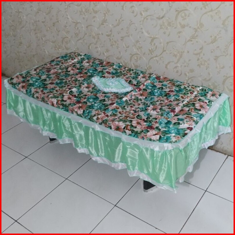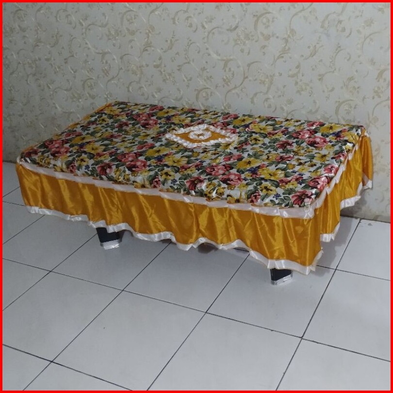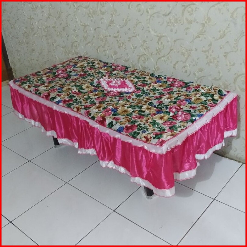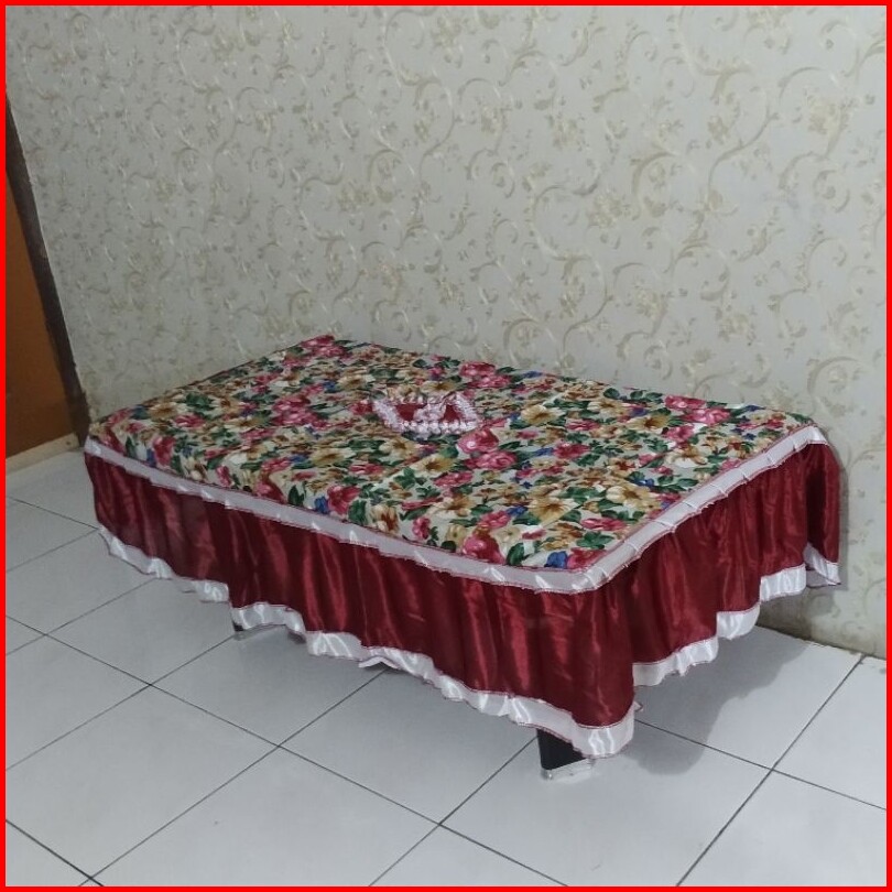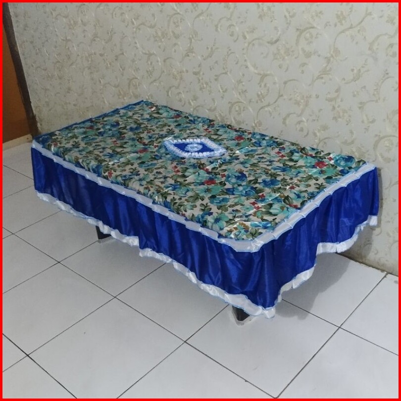 Taplak Meja Tamu Motif Bunga Variasi List Putih Size 60 X 105 Cm