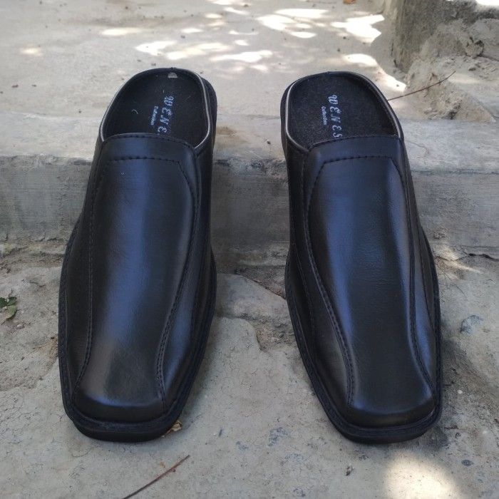 SEPATU SANDAL SLOP TUTONG PRIA FULL HITAM POLOS UKURAN JUMBO BIG SIZE - Hitam 38