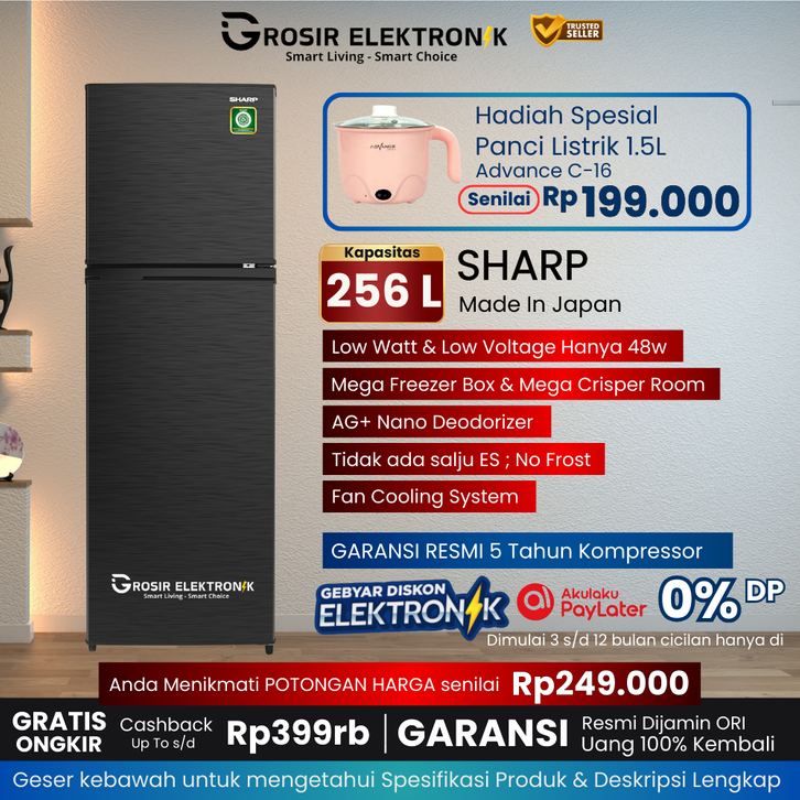 { 1Pintu 133 L } SJ-N162D, { 1Pintu 166 L } SJ-N182D, { 1Pintu 184 L } SJ-N192D, { 2Pintu 172 L } SJ-195MN, { 2Pintu 205 L } SJ-236MN, { 2Pintu 256 L } SJ-316MN