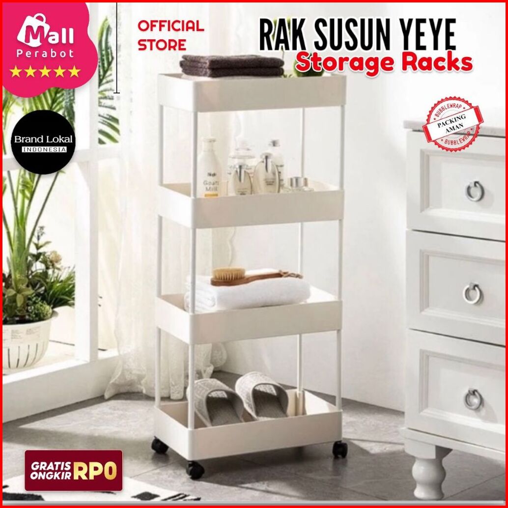 Mall Perabot Square Rak Toilet Rak Dapur Susun Rak Yeye Serbaguna 4 Tingkat Rak Bayi Non Roda