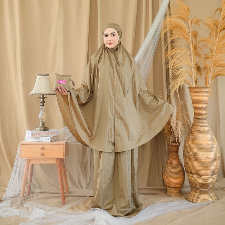 Nelula - Mukena Traveling Mini Pouch Penutup Dagu Dewasa Jumbo Bahan Parasut Crinkle 2024 Murah
