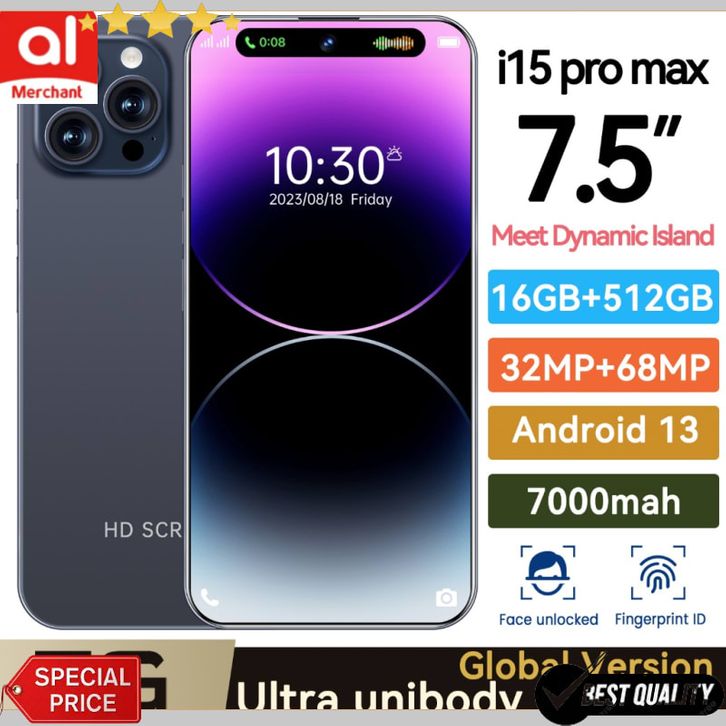 Garansi ori Phone i15 Pro Max 100 ribuan Handphone Asli android13 hp i15 promax 7.5 inci 16GB RAM 512GB ROM HD