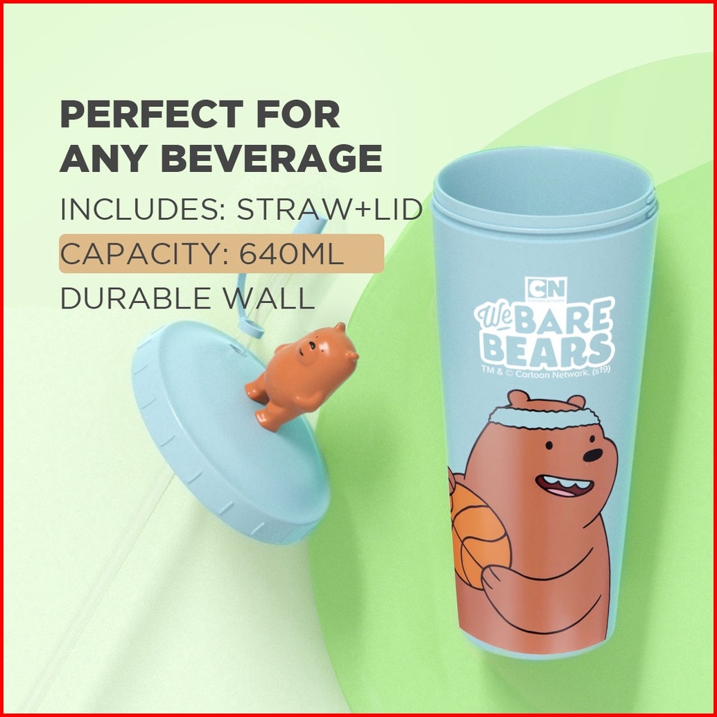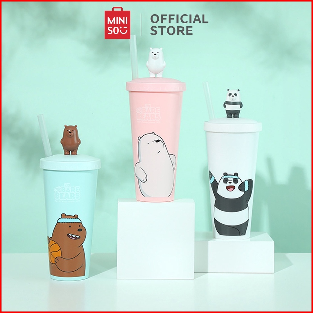 Miniso Botol Minum Lucu Motif Karakter Imut Dengan Sedotan Tempat Air Minum Sedotan Straw We Bare Bears Water Bottle Wad