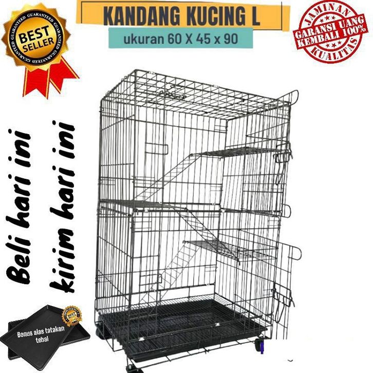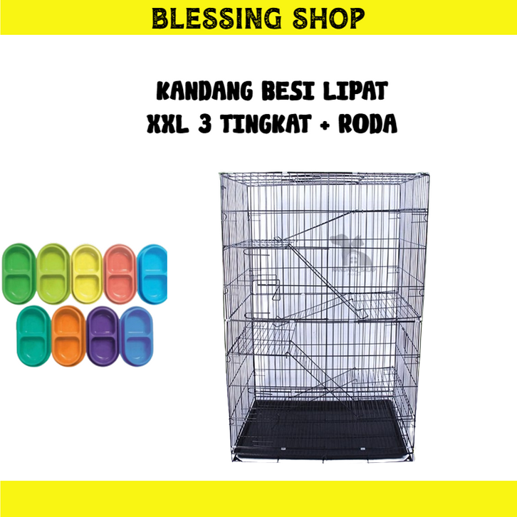 Kandang Hewan Kucing Tingkat 3 Besi Lipat Tinggi 130x90x55 XXL EXTRA Jumbo Roda + FREE TEMPAT MAKAN KUCING