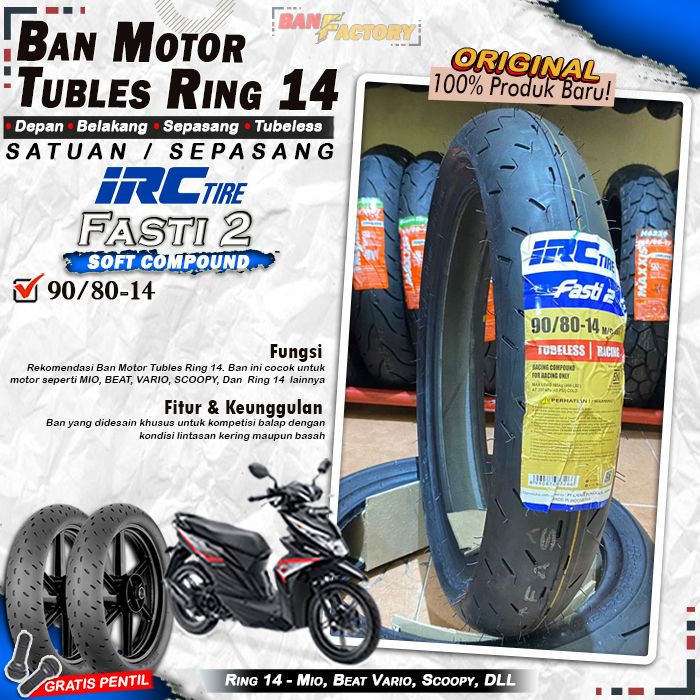 Ban Motor IRC FASTI 2 Ring 14 Tubeless Ban Tubles Depan Belakang Motor matic Ring 14 motor Bebek Vixion Moge Ring 17