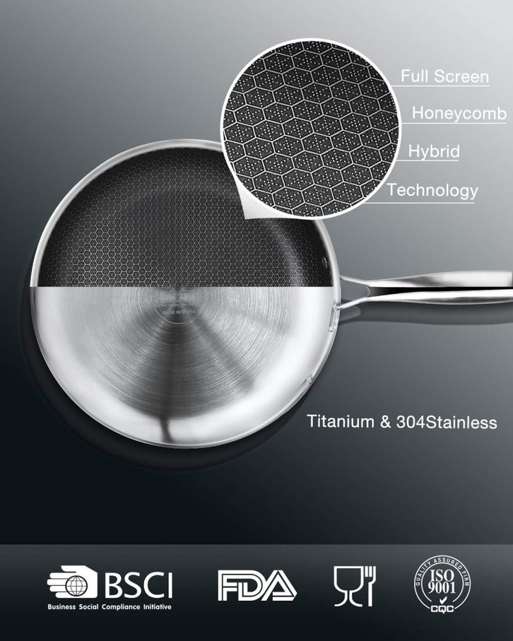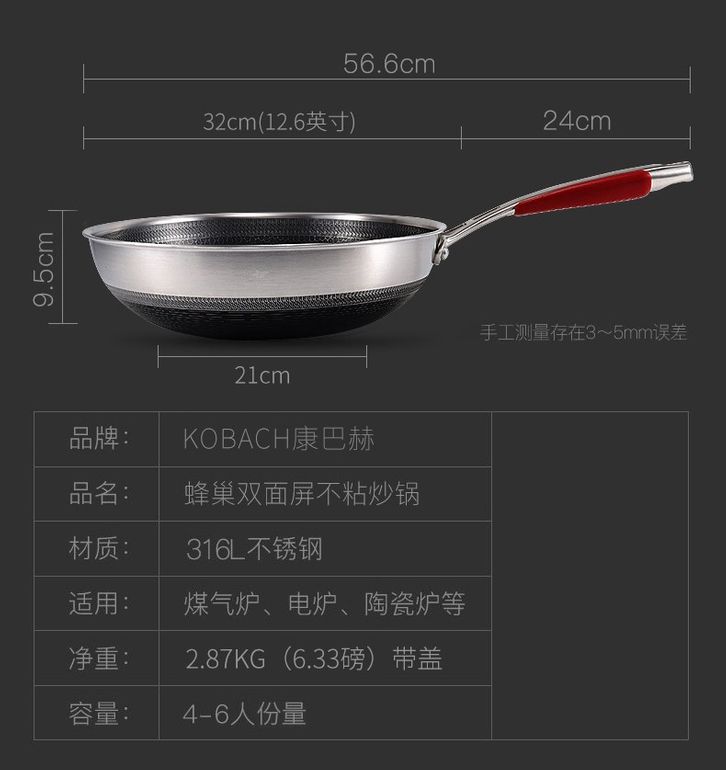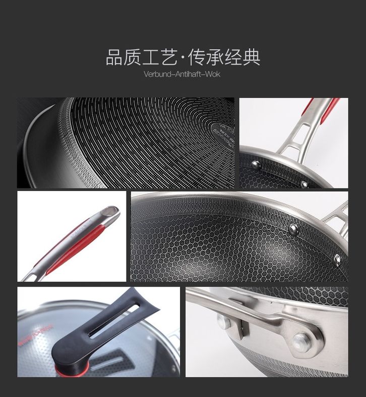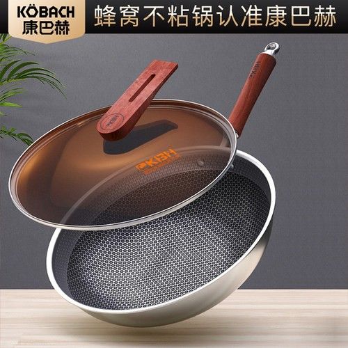 KBH KOBACH Non-stick Wok 316L Stainless Steel Fry Pan Honeycomb 32cm kualitas terbaik