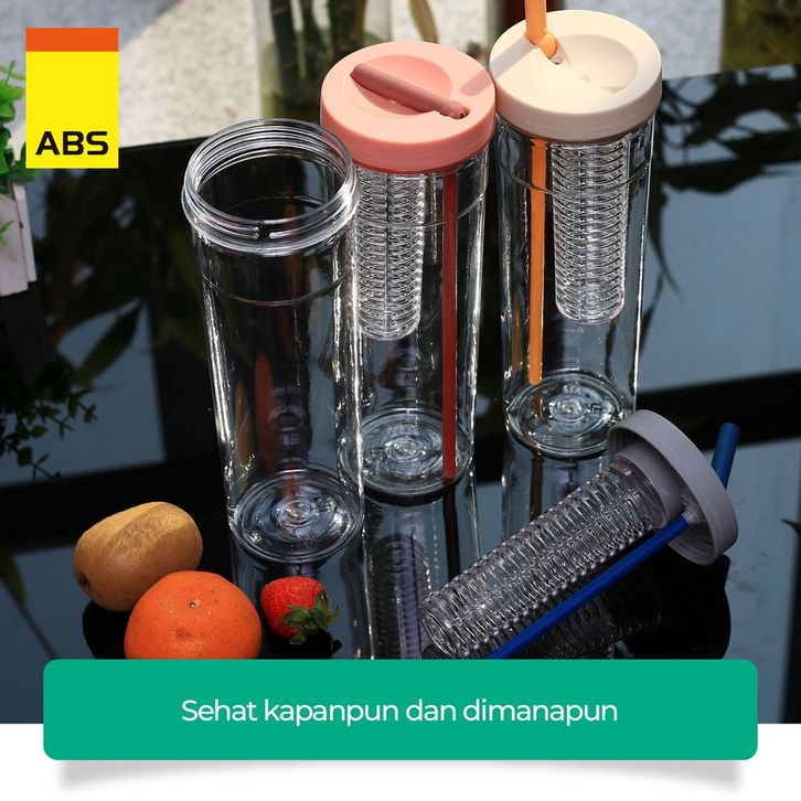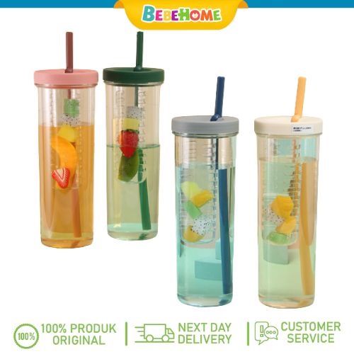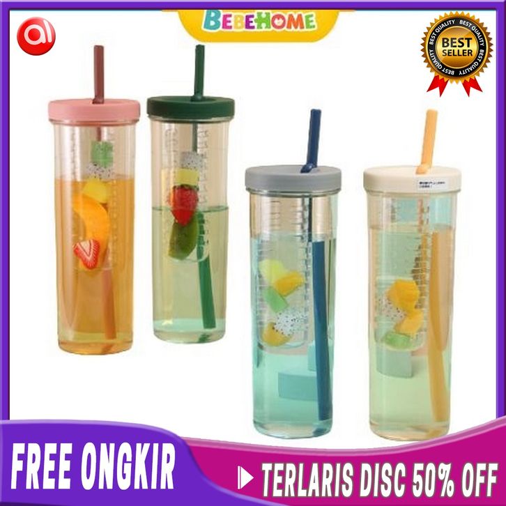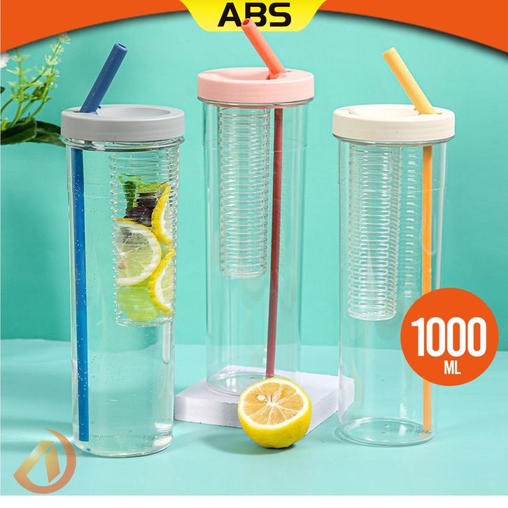 TANPA ONGKIR Botol Minum Transparan Infused Water Botol Minum Sedotan Lipat Botol Minum Buah 1000ml