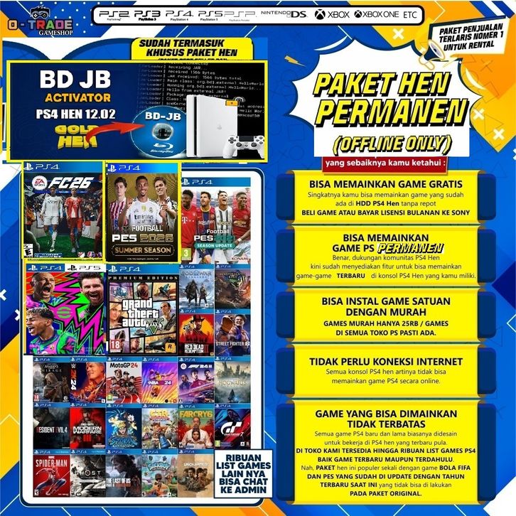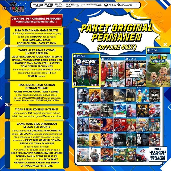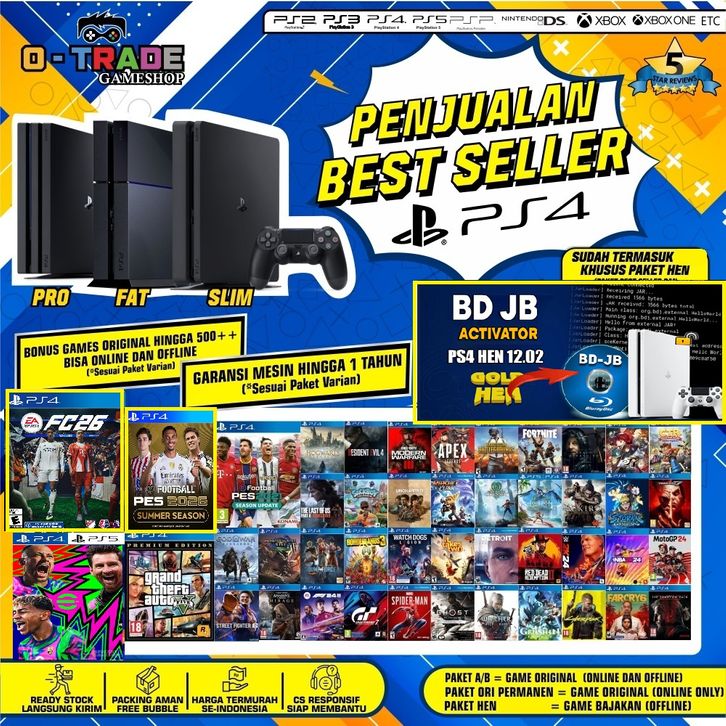 PLAYSTATION 4 PS4 FAT / SLIM / PRO HDD 500GB / 1TB BONUS FULL GAME TERBARU BISA ONLINE DAN OFFLINE