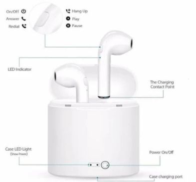 Headset Bluetooth i7S Twins Wireless 5.0 Touch Control