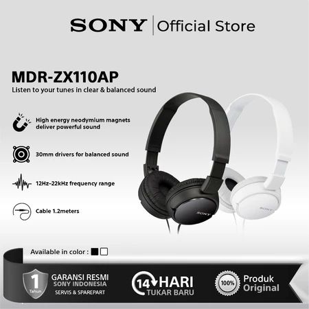 SONY MDR-ZX110AP SMARTPHONE HEADSET | HEADSET BLUETOOTH ORIGINAL EARPHONE HEADPHONE GAMING FULL BASS HANDSFREE KABEL ORI