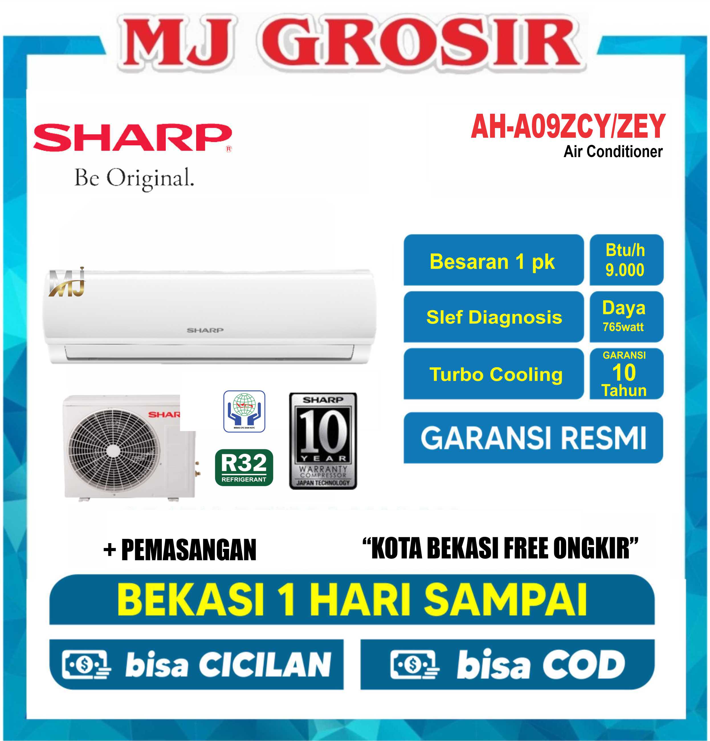 AC SHARP AH-A 09 ZEY 1 PK + PASANG R32 TURBO COOL STANDART 750 LOW WATT