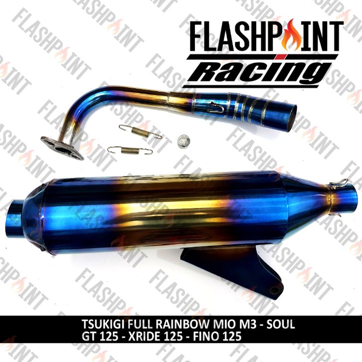 (FREEONGKIR) KNALPOT TSUKIGI MOTOR MIO SPORTY - MIO SMILE - MIO SOUL FULL BODY BLUE PELANGI KARBON BAKAR ANTI LUNTUR