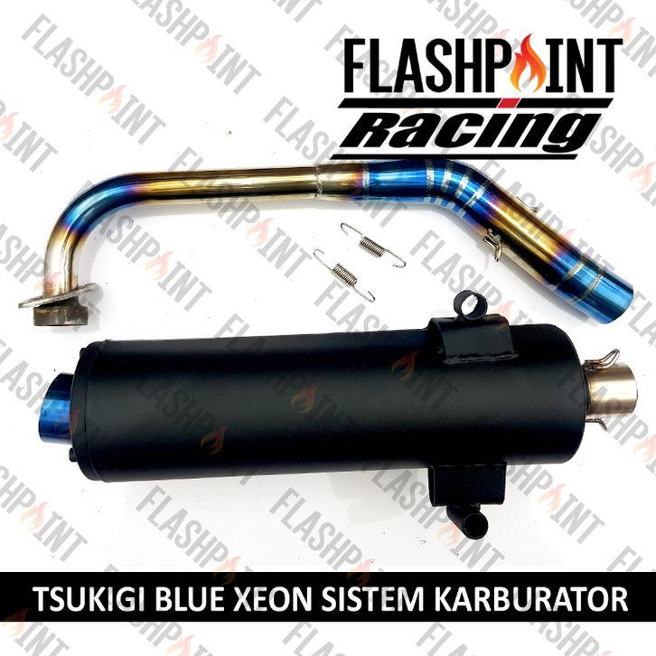 (FREEONGKIR) KNALPOT TSUKIGI MOTOR XEON KARBU KARBURATOR MODEL AZURE BLUE PELANGI RAINBOW KARBON BAKAR ANTI LUNTUR MOTOR