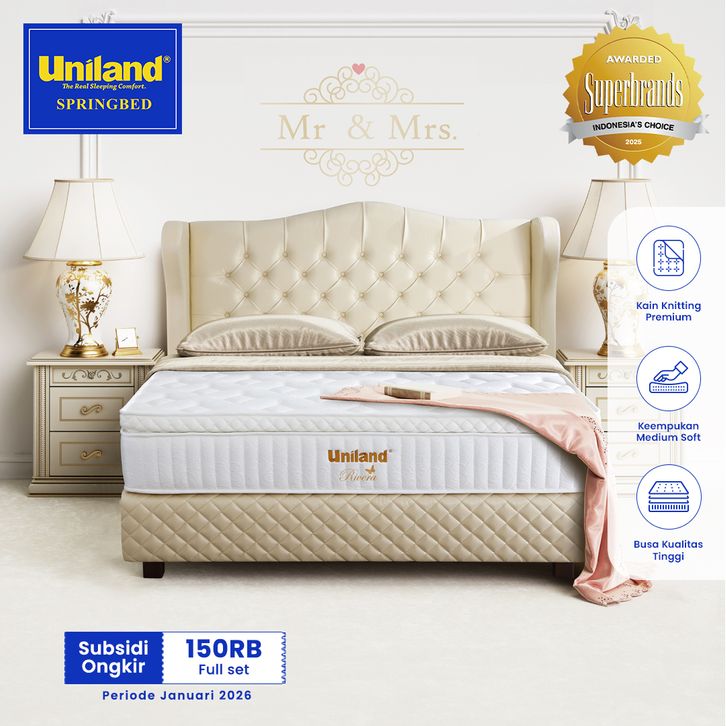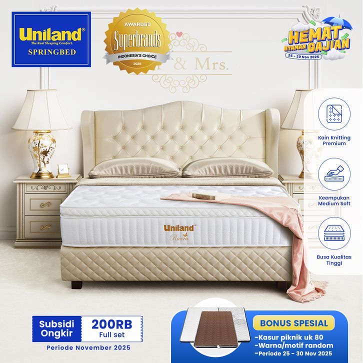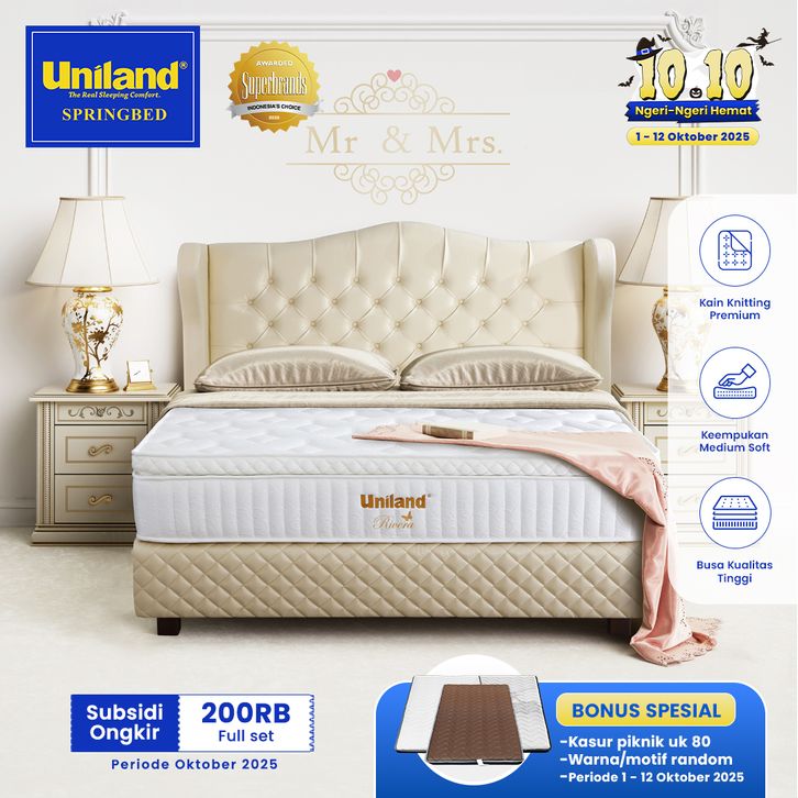 Uniland Springbed Rivera Pillowtop Tiffany FullSet FREE Mattress Protector + bantal guling
