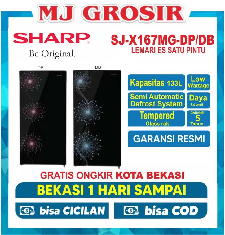 KULKAS SHARP SJ-X 167 MG LEMARI ES 1 PINTU SHINE MAGNEGLASS