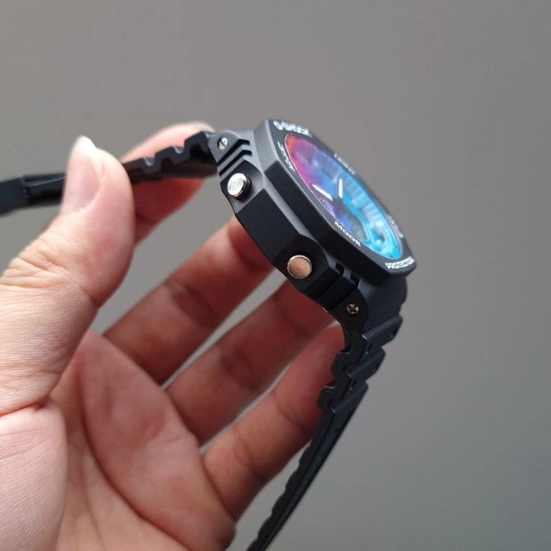 JAM TANGAN PRIA G-SHOCK GA-2100 BLACK DIAL RAINBOW RUBBER FREE ONGKIR - FREE BOX