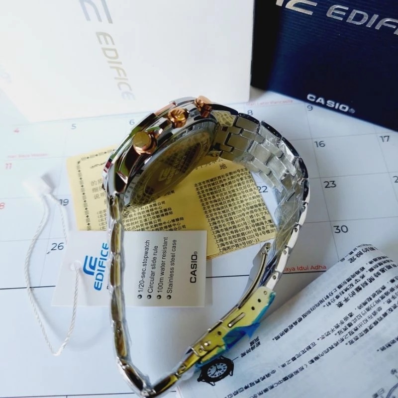 JAM TANGAN PRIA CASIO EDIFICE EFR-539SG-7A5VUDF SILVER COMBI ROSEGOLD STAINLESS STEEL FREE ONGKIR - FREE BOX