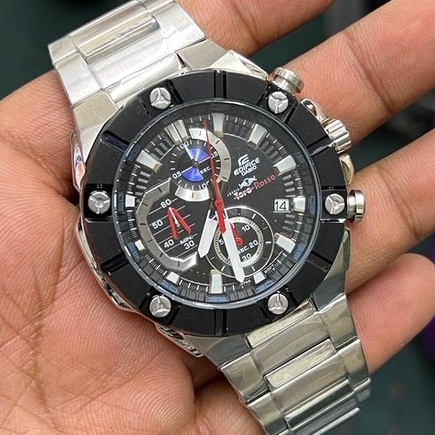 JAM TANGAN PRIA CASIO EDIFICE EFR-569 SILVER DIAL BLACK TORO ROSSO STAINLESS STEEL FREE ONGKIR - FREE BOX