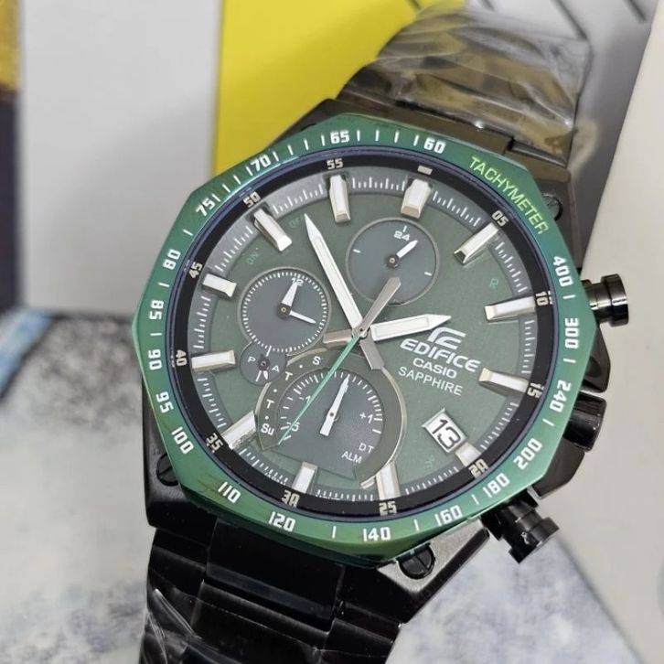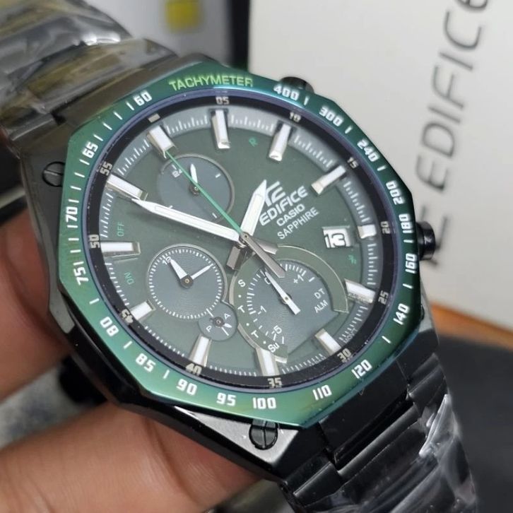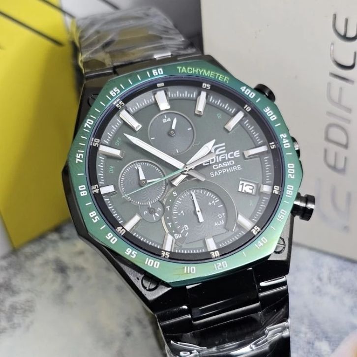 JAM TANGAN PRIA CASIO EDIFICE EQB-1100 BLACK RING GREEN STAINLESS STEEL FREE ONGKIR - FREE BOX
